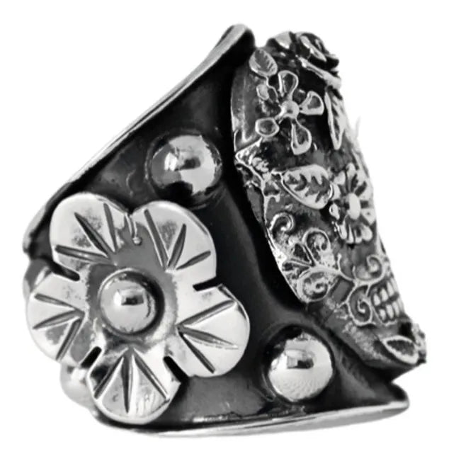 Anillo Mujer Calavera Flores Plata 925 Frida Kahlo Ajustable