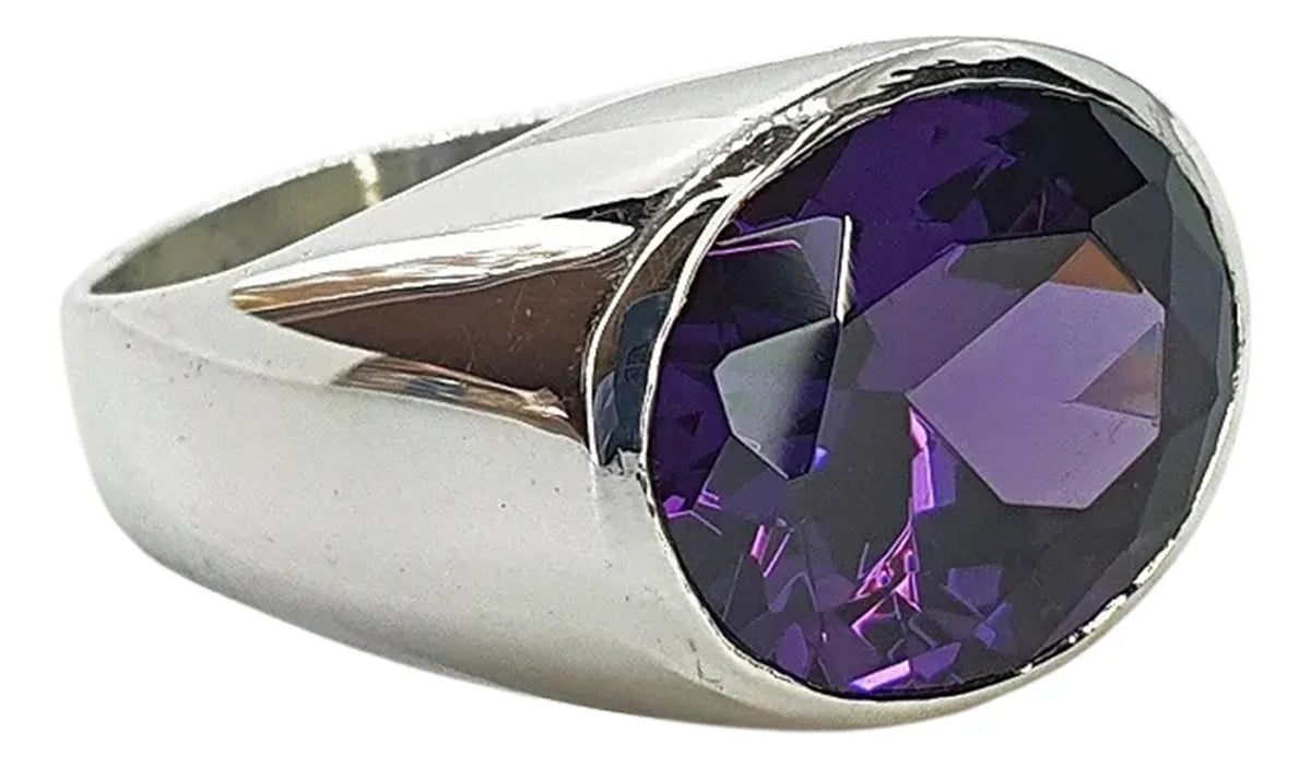 anillo alejandrina hombre plata 925, anillo zirconia violeta, anillo elegante hombre taxco, anillo plata artesanal, anillo masculino lujo, anillo alejandrina 12x14, joyería mexicana plata fina, anillo caballero plata 925, anillo artesanía taxco, anillo de lujo hombre