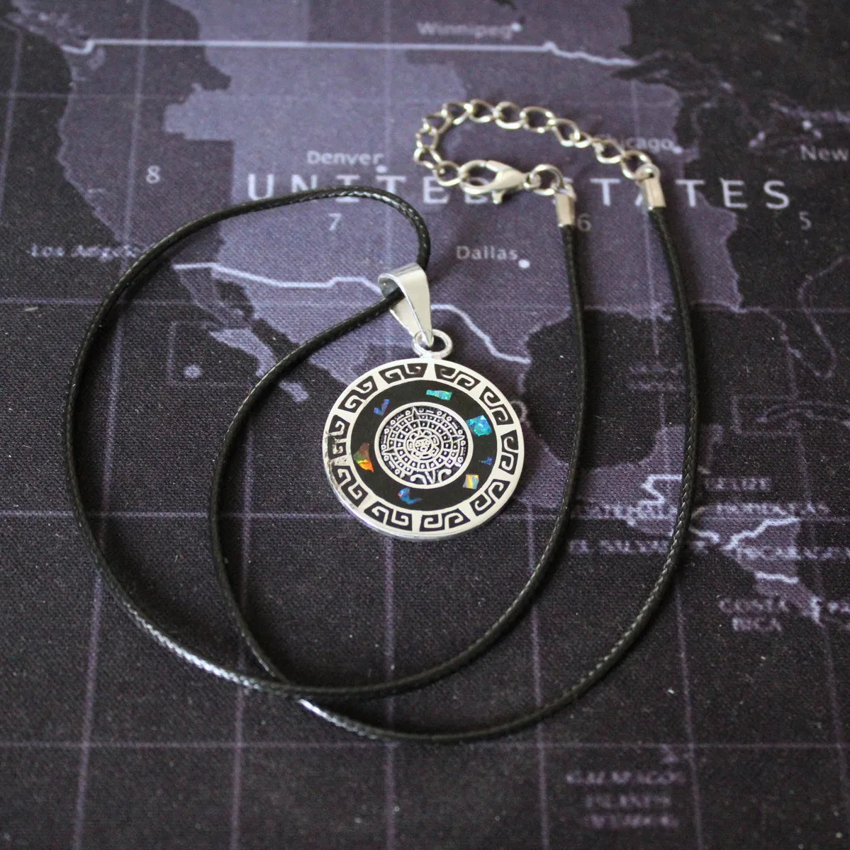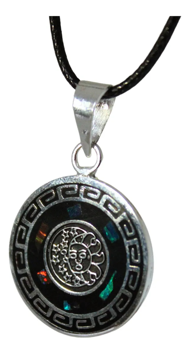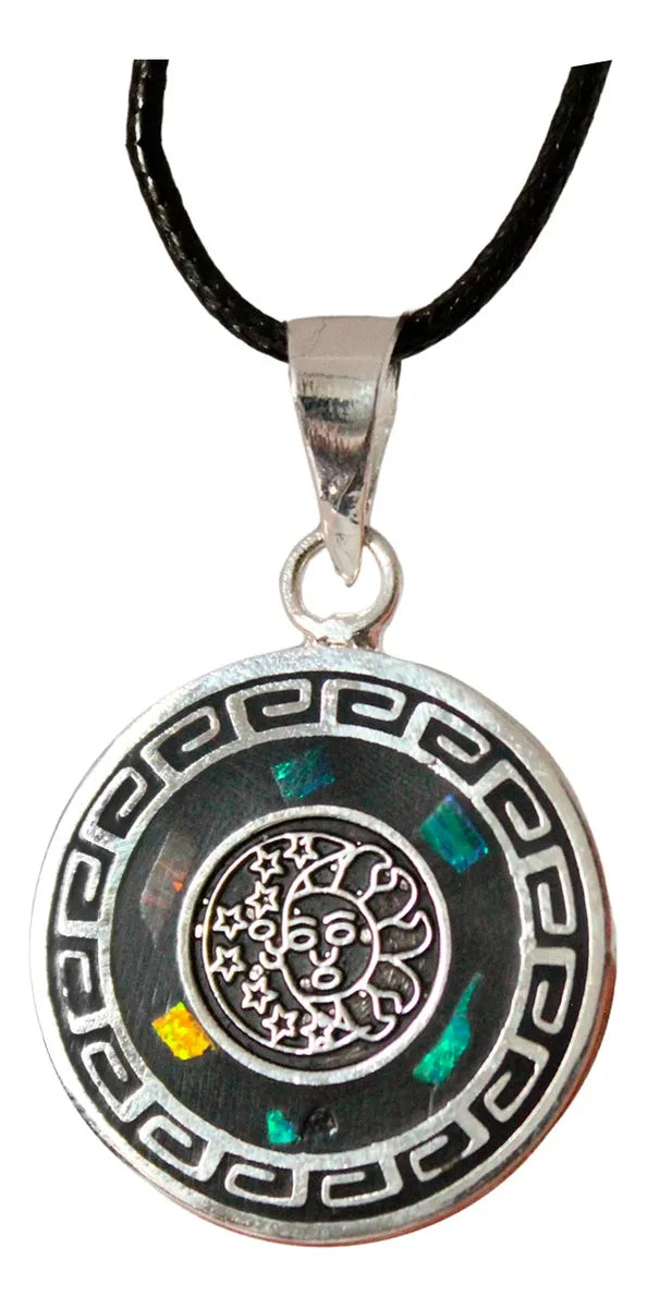 Dije Colgante Ópalo Sol Y Luna Plateado Calendario Azteca