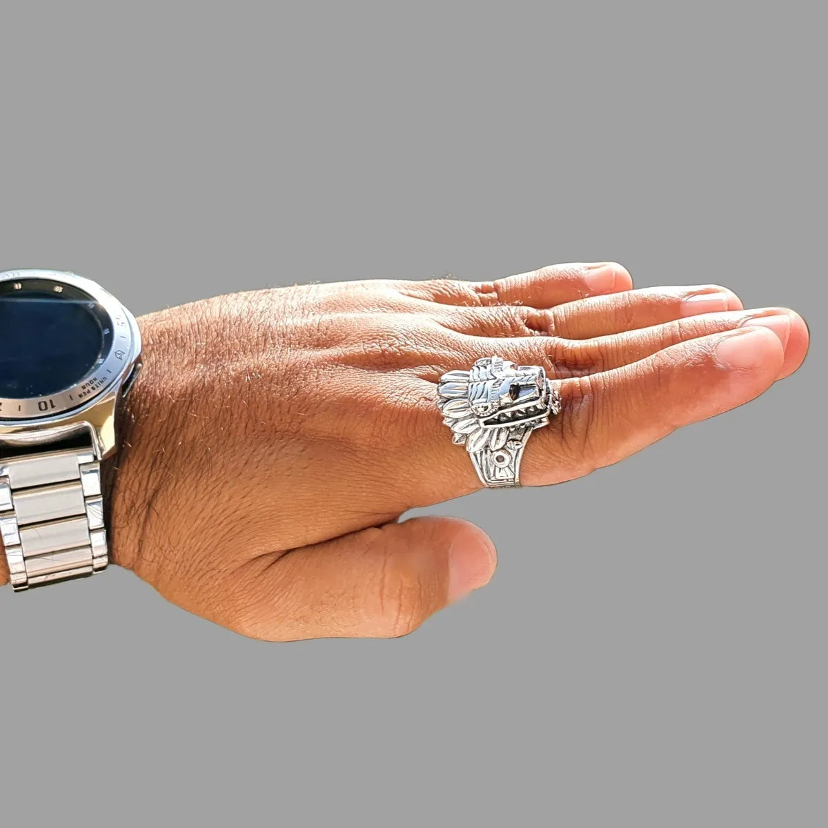 Anillo Hombre Quetzalcóatl Plata 925 Maciza Dios Azteca Nice