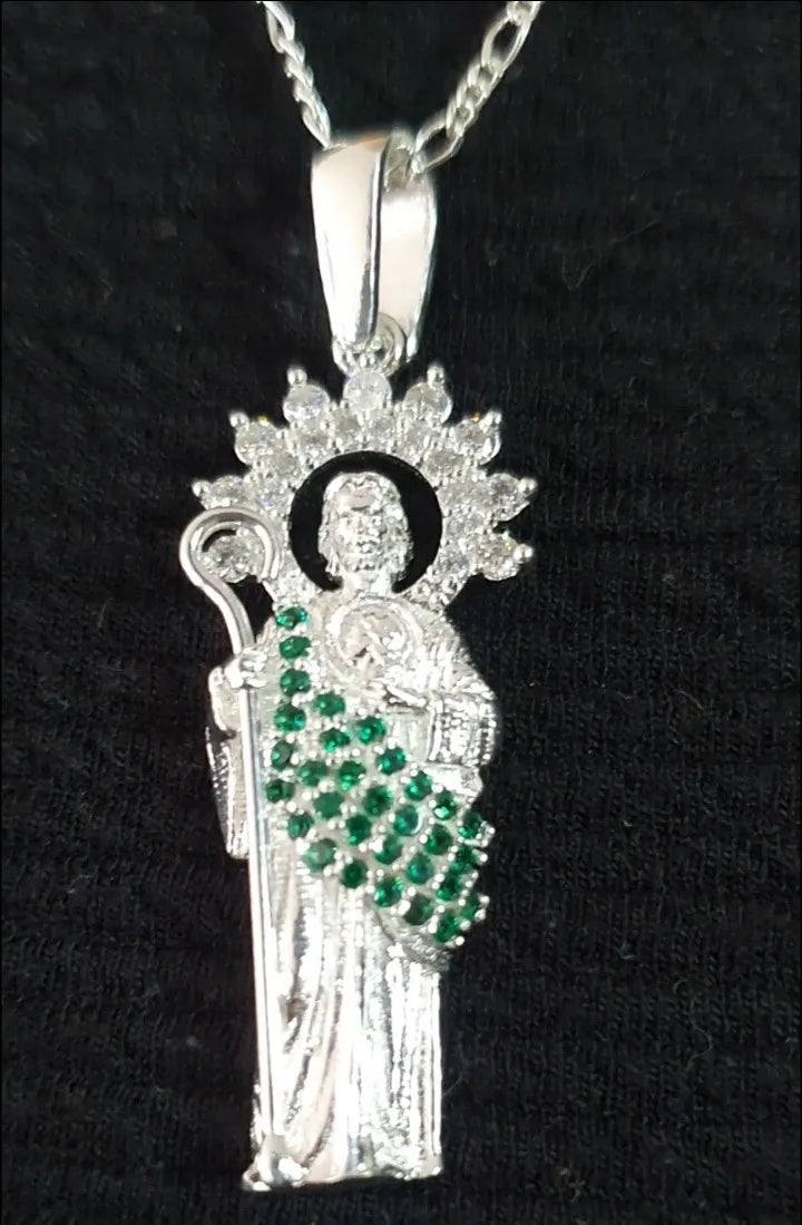 Dije San Judas Plata 925 Manto Esmeralda Zirconias Cadena